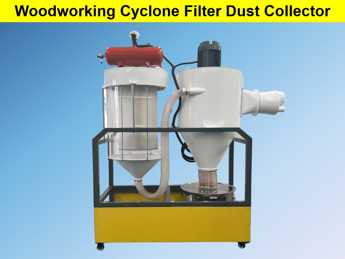 Ang cyclone filter-type woodworking dust collectors ay isang kumbinasyon ng cyclone separation at filter cartridge filtration. Pinagsasama nila ang mga pakinabang ng cyclone dust collectors sa paghawak ng mataas na konsentrasyon na magaspang na alikabok na may mataas na katumpakan na katangian ng mga filter cartridge dust collectors sa pagsala ng pinong alikabok. Partikular na idinisenyo para sa malawak na pamamahagi ng laki ng butil ng sawdust at pulbos na gawa sa kahoy sa mga workshop sa paggawa ng kahoy, ang kanilang kahusayan sa pag-alis ng alikabok ay mas mataas kaysa sa kagamitan ng single-unit.